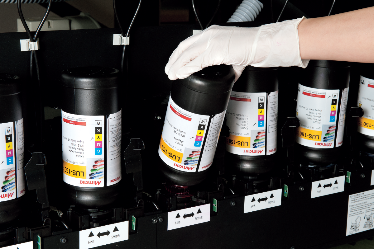 “UV inks are now available in one litre bottles that offer savings by volume over the 440cc cartridges and similar choices, but even larger – 2l packs – are available for Mimaki’s solvent and sublimation inks as well,” says Newman. “Original bulk ink systems are an option even on Mimaki’s smallest solvent printer/cutter – the CJV150-75 – meaning at every level, savings can be made for customers using higher volumes of ink.”