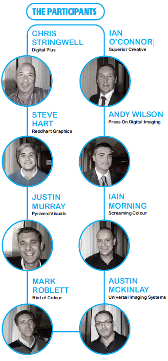 Eight players from the digital wide-format sector, Chris Stringwell from Digital Plus, Ian O'Connor from Superior Creative, Andy Wilson from Press On Digital Imaging, Steve Hart from reddhart Graphics, Justin Murray from Pyramid Visuals, Iain Morning from Screaming Colour, Mark Roblett from Riot of Colour and Austin McKinlay from Universal Imaging Systems, discussed and hotly debated the idea of ‘diversify or die’ and other key messages at the recent widthwise 2010 roundtable.