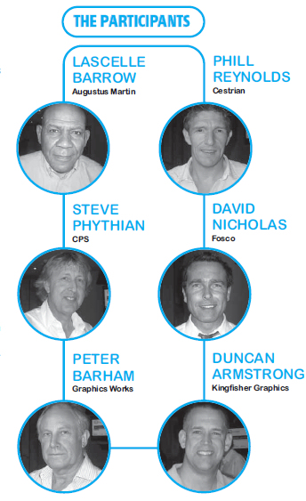 Industry chiefs Lascelle Barrow from Augustus Martin, Phill Reynolds from Cestrian, David Nicholas from Fosco, Duncan Armstrong from Kingfisher Graphics, Steve Phythian from CPS and Peter Barham from Graphics Works, come together to discuss the findings of Widthwise 2011 and to chew over the state of the sector.