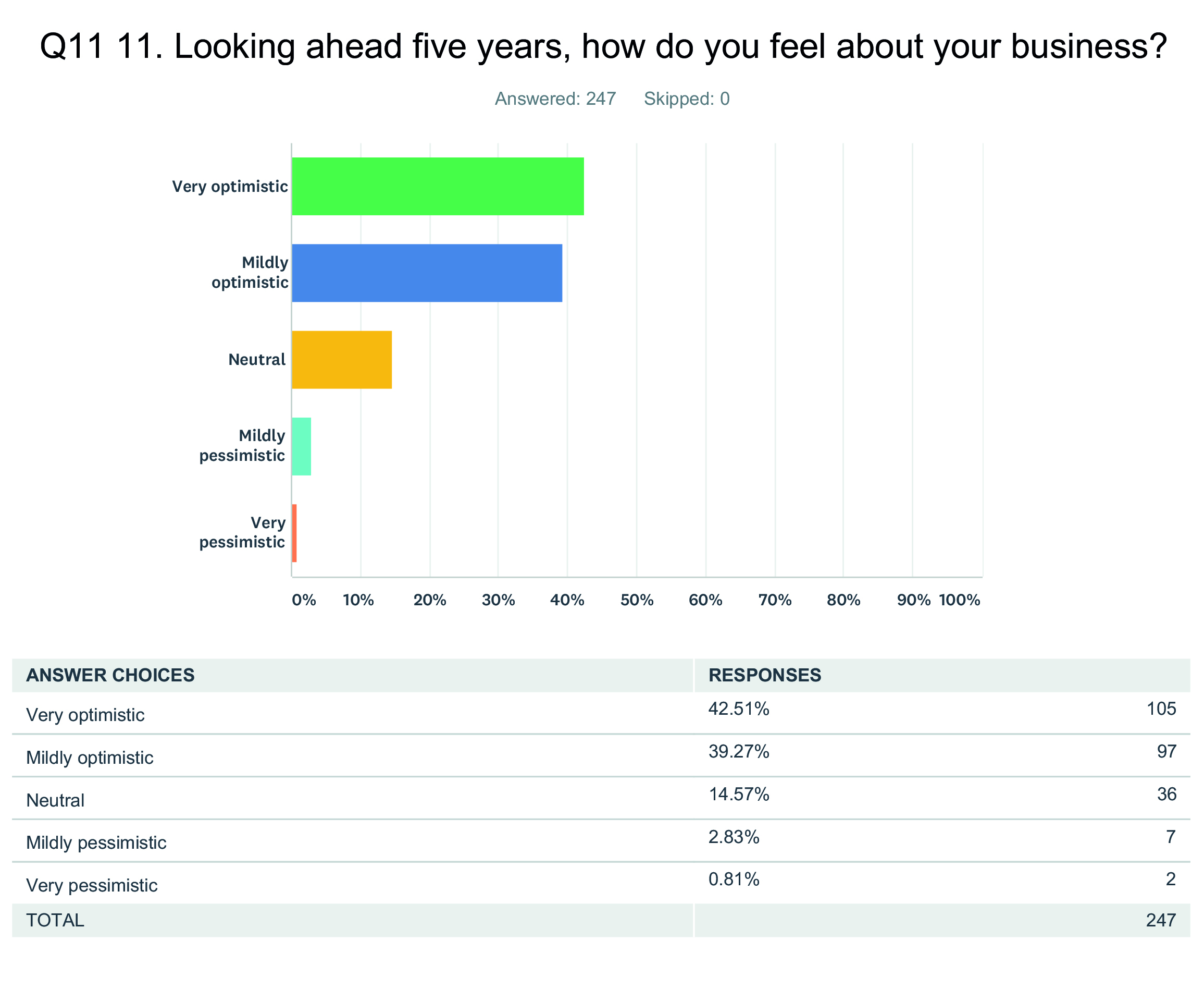 Of the 247 print chiefs who responded to the independent survey – carried out by Image Reports at the start of the year – 105 of them said that, looking ahead five years, they were ‘very optimistic’ about the state of business. Another 97 said they were ‘mildly optimistic’, which may sound a bit like damning with faint praise, but the thing to also point out is that only seven respondents said they were even ‘mildly pessimistic’ and just two ‘very pessimistic’.