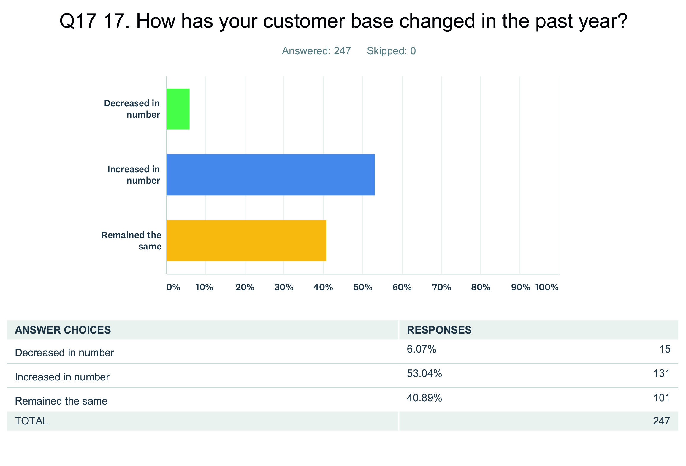 However, 34.82% still expect to increase staffing in the period to the end 2020. Despite lots of talk about finding it increasingly difficult to recruit, 77.33% said that’s not the case. Moreover, 94.33% say they are not finding it harder to retain staff, despite the common belief that that is so.
