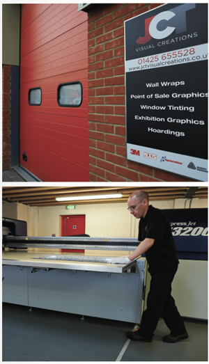 JCT Visual Communications, based at the edge of the New Forest in Hampshire, mainly produces retail and exhibition work, and counts companies like Pret A Manger and Pizza Hut amongst its clients. The company grew out of an older company, Nationwide Fitting Services, which was set up around 11 years ago when a printer suggested that Turner should try contract fitting. But Turner says that sometimes the graphics that he was asked to fit had been printed badly, noting: “The clients were being let down by the printing so we decided that we wanted to give them a bit more backup.”